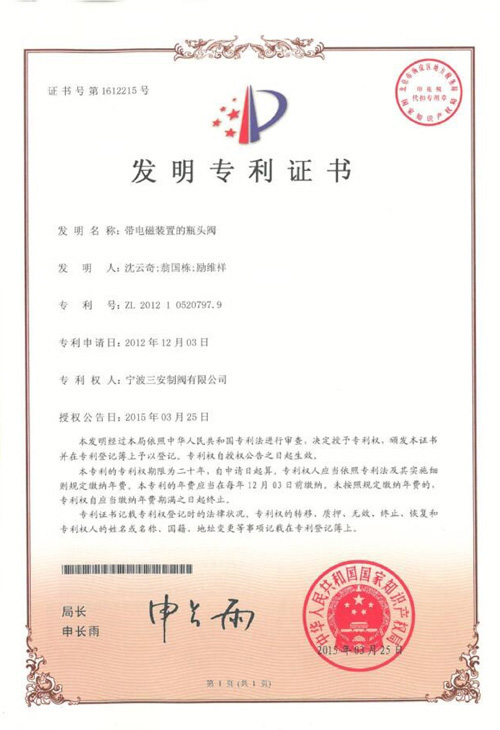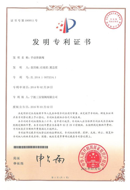 寧波三安制閥有限公司是國(guó)家高新技術(shù)企業(yè)、中國(guó)工業(yè)氣體工業(yè)協(xié)會(huì)理事單位、中國(guó)氣體協(xié)會(huì)氣體壓力設(shè)備專業(yè)委員會(huì)委員、全國(guó)氣瓶標(biāo)準(zhǔn)化技術(shù)委員會(huì)附件分委會(huì)秘書(shū)處單位。